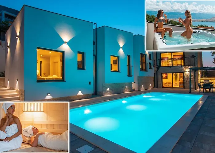Die Villa Perla Nera & Villa Nevera By Pag Tours Stan Trigraci liegt circa 5 Minuten vom Strand Bosana entfernt und bietet einen Swimmingpool, wo sich Gäste entspannen können. Diese Villa in Stan Trigraci liegt in 3 Kilometer Entfernung vom Strand Ručica und verfügt über eine Terrasse mit Blick aufs Meer.